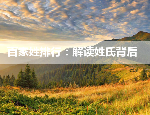 在中国传统文化中,百家姓不仅是家族血脉的象征,更承载着丰富的文化内涵。今天,我们就来探讨一下百家姓的排行,以及与之相关的属相配对和商铺取名等话题,感受中华姓氏文化的博大精深。